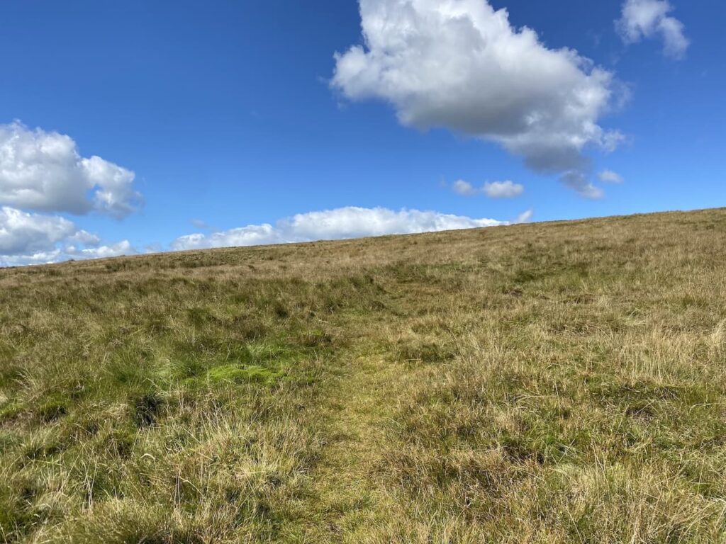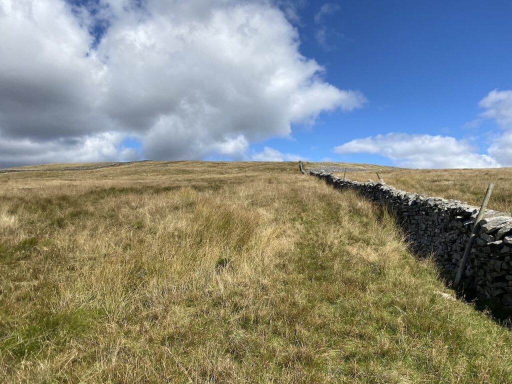 Our route gradually ascends on a faint path in a north-westerly direction towards a dry stone wall.