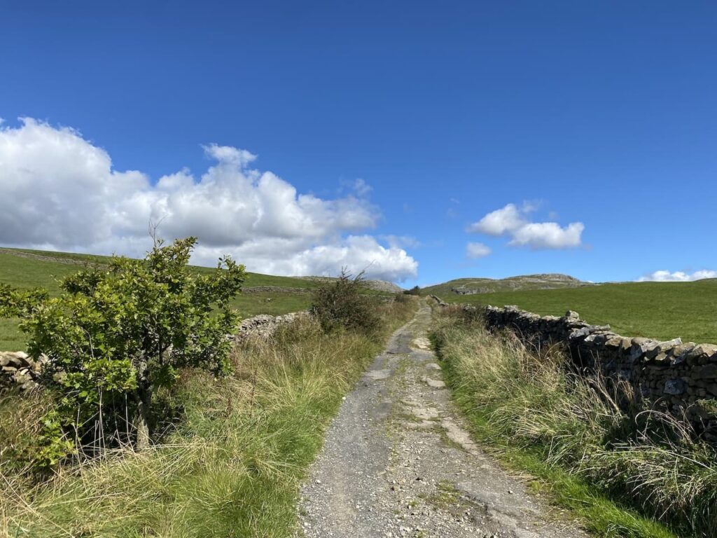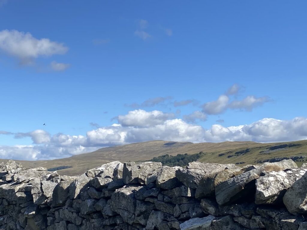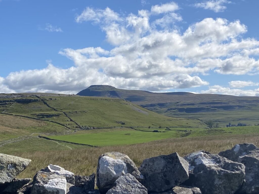 It is a cracking day and as we walk along the lane we get a stunning view of Ingleborough. It was only a few days ago that we were up there as part of the Three Peaks route.
