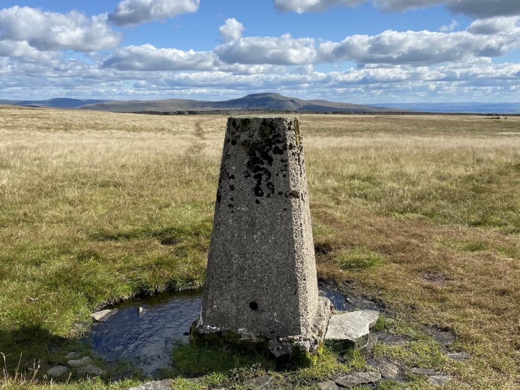 Keeping the wall to our right the route is easy to follow, though occasionally boggy we find away around without difficulty. After passing through a drystone wall we veer away from the wall on our right to head to the Gragareth OS Trig Point.