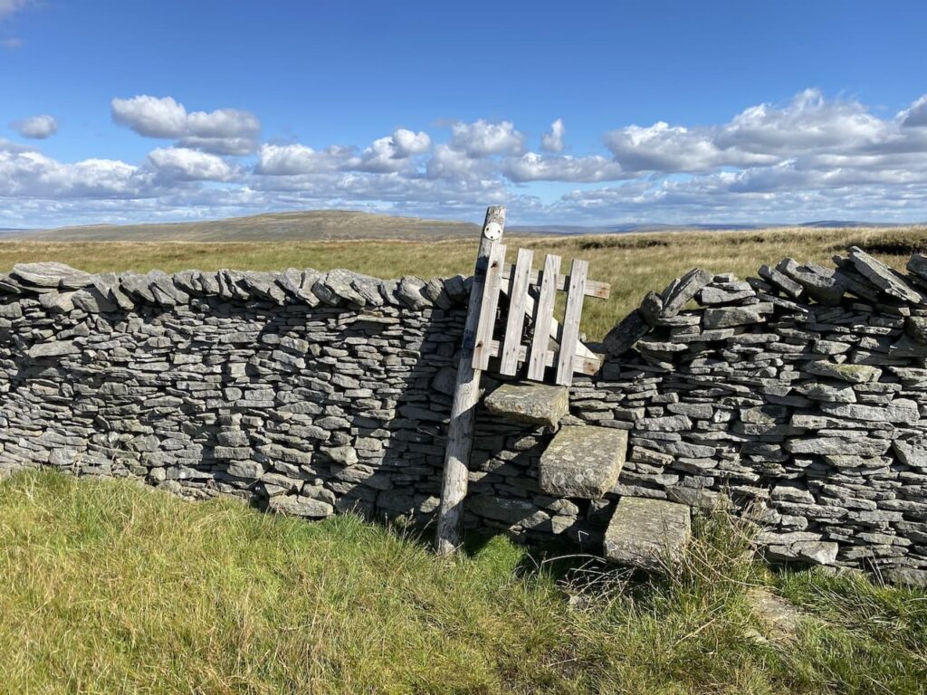 On reaching a wall stile on the left we leave the track and take the stile onto moorland.