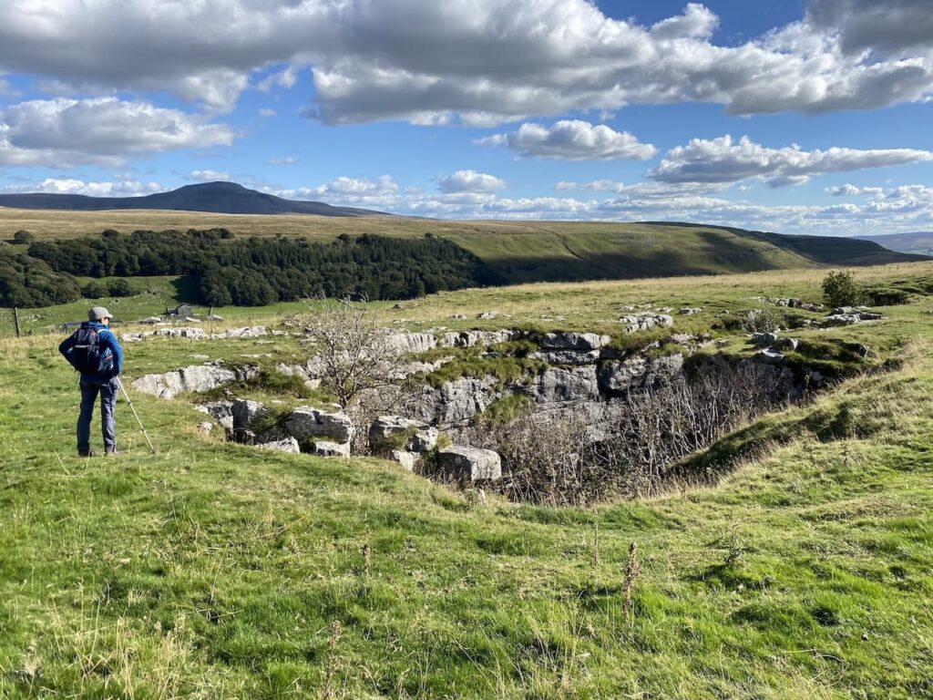 At Bullpot Bank we reach a track and turn right, following the track we quickly reach Rowten Pot. This is one of three entrances to Rowten pot which is 236 feet deep. It is one of several entrances into the 17 mile long cave system that drains Kingsdale.
