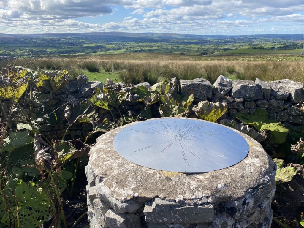 After 400 metres walking along the road we reach the toposcope. I’m always amazed by how close we are to Morecambe Bay, it is only 15 miles away and the Lakeland Fells are just 25 miles from here.