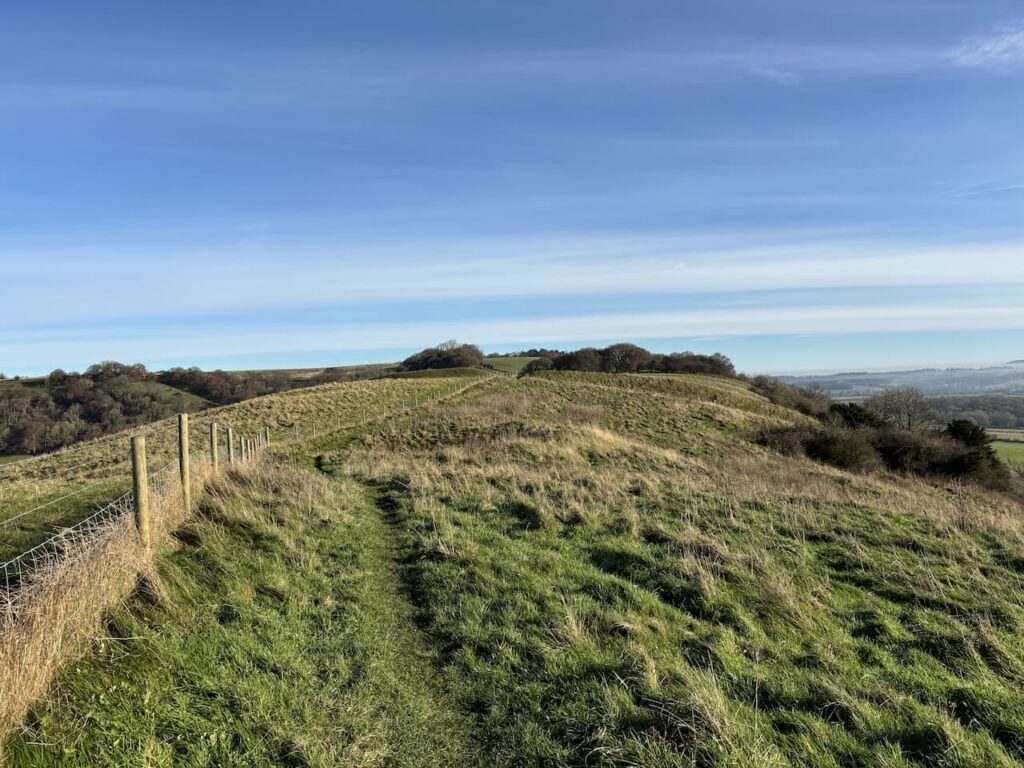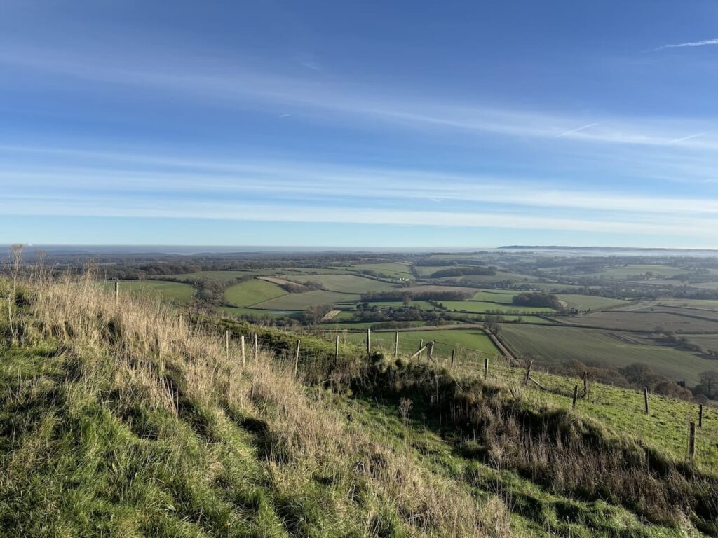 Martinsell is the third highest point in Wiltshire and is the site of a large Iron Age Hillfort which covered 32 acres. Looking at the views and the steep sides it is clear why it was chosen.
