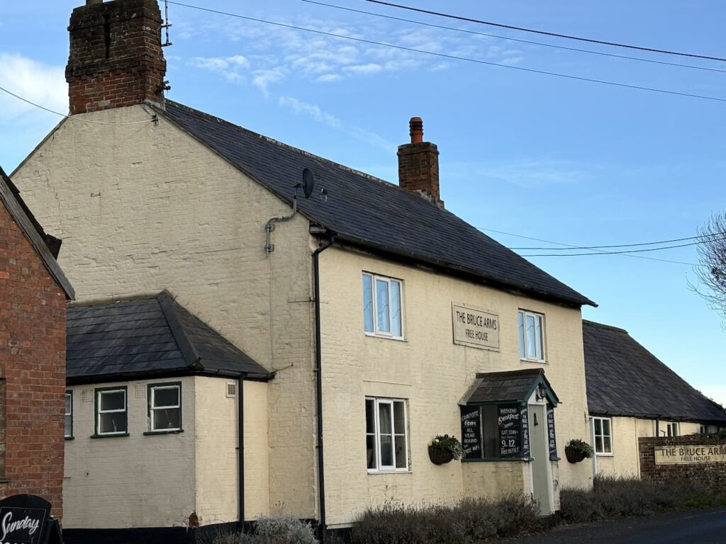 We stay with this track until we reach the B3087 at the Bruce Arms.