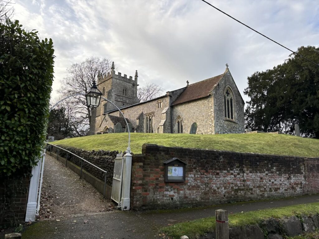 In the village we turn right, quickly reaching St Peter’s Church. Parts of this church date to the 13th, 14th and 15th century. In the 19th century many churches were restored and this one is no exception with work being undertaken in 1875.