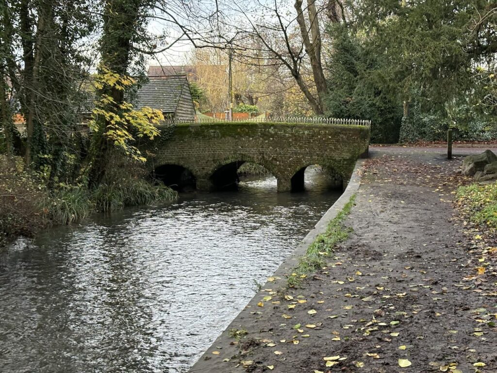 We stay with the path until it reaches a footbridge over the stream and then follow the path as it leads into the edge of Pewsey.