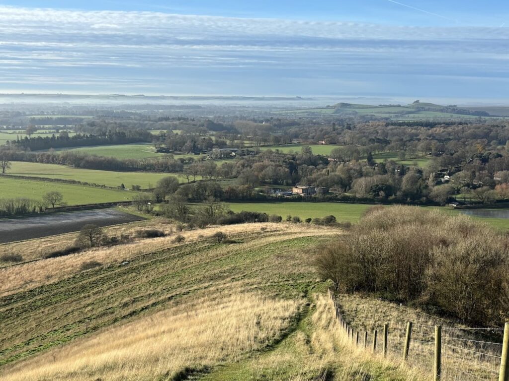 It is a stiff ascent of the hill but the views behind us along the Vale of Pewsey make it worthwhile.