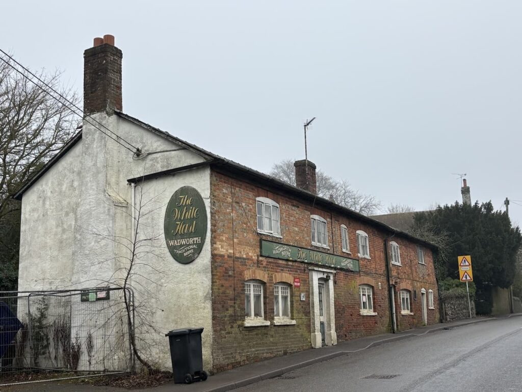 After passing Oare House I follow the minor road to reach the A345 and turn left going by the now closed White Hart pub. This was the village pub from 1795 until 2014, during that time it was known by various names; The Green Man, 1795-1823, The Mompession Arms 1823-1889, and then The White Hart from 1889 until the present day.