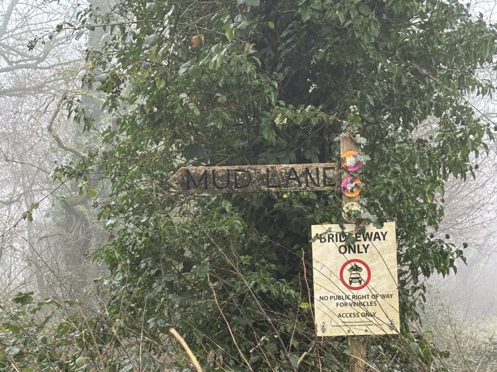 Crossing the road I join Mud Lane, it soon becomes very obvious why it has this name. But after an initial very muddy patch the route becomes firmer as it passes woodland.