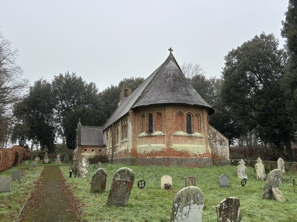 The path leads to the A345 which I cross with care to enter the church yard opposite to visit Holy Trinity Church. This church was built in 1858 with funds donated by Mrs M Goodman who lived at nearby Oare House, she was the widow of the Reverend Maurice Hillier Goodman who had been vicar at nearby Walcot.