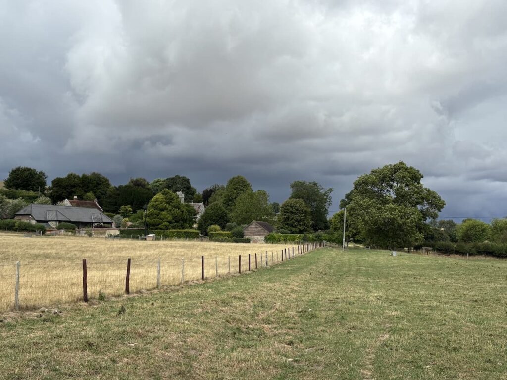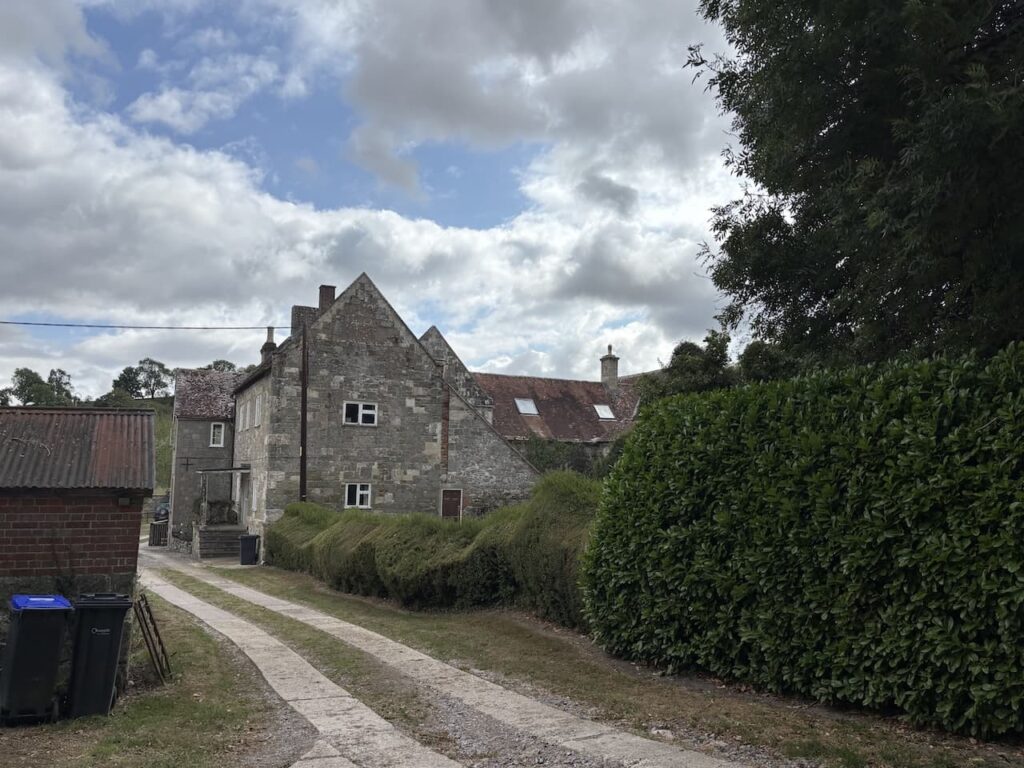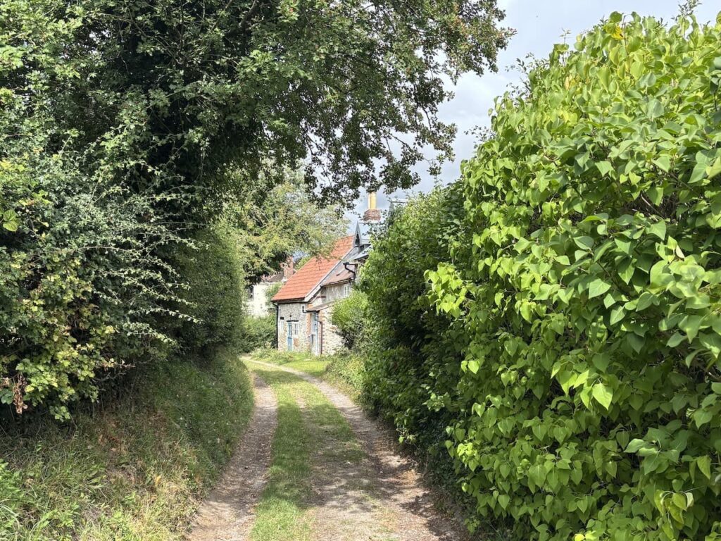 Nearing the village I go through a gate along a track and pass cottages.