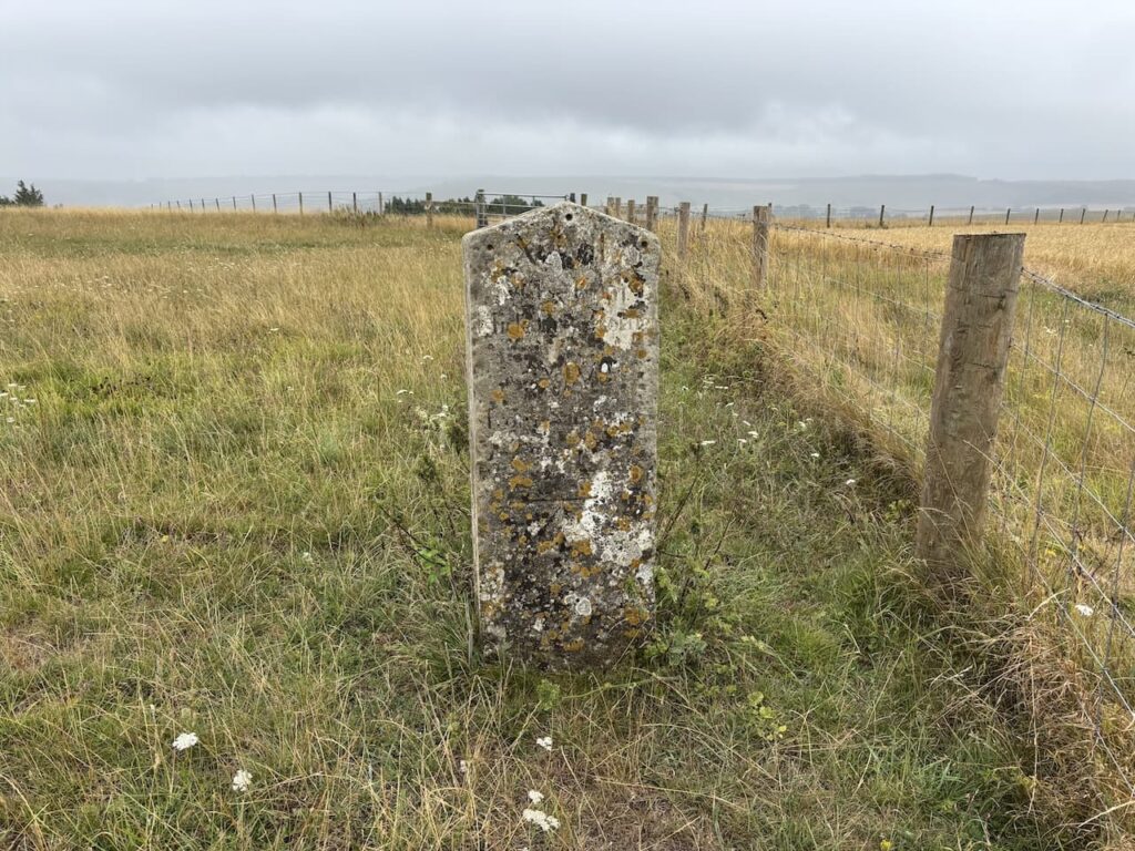 After 2.5 km, just after passing a large long barrow on the right I take a footpath on the left that crosses a stile and soon reaches an old milestone. I have previously struggled to make out the inscription, but having researched it on the Historic England website I know it reads ‘XCVII MILES FROM HIDE PARK CORNER, XIV FROM SALISBURY 1756’.