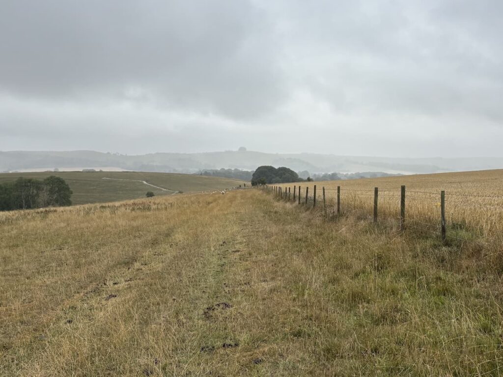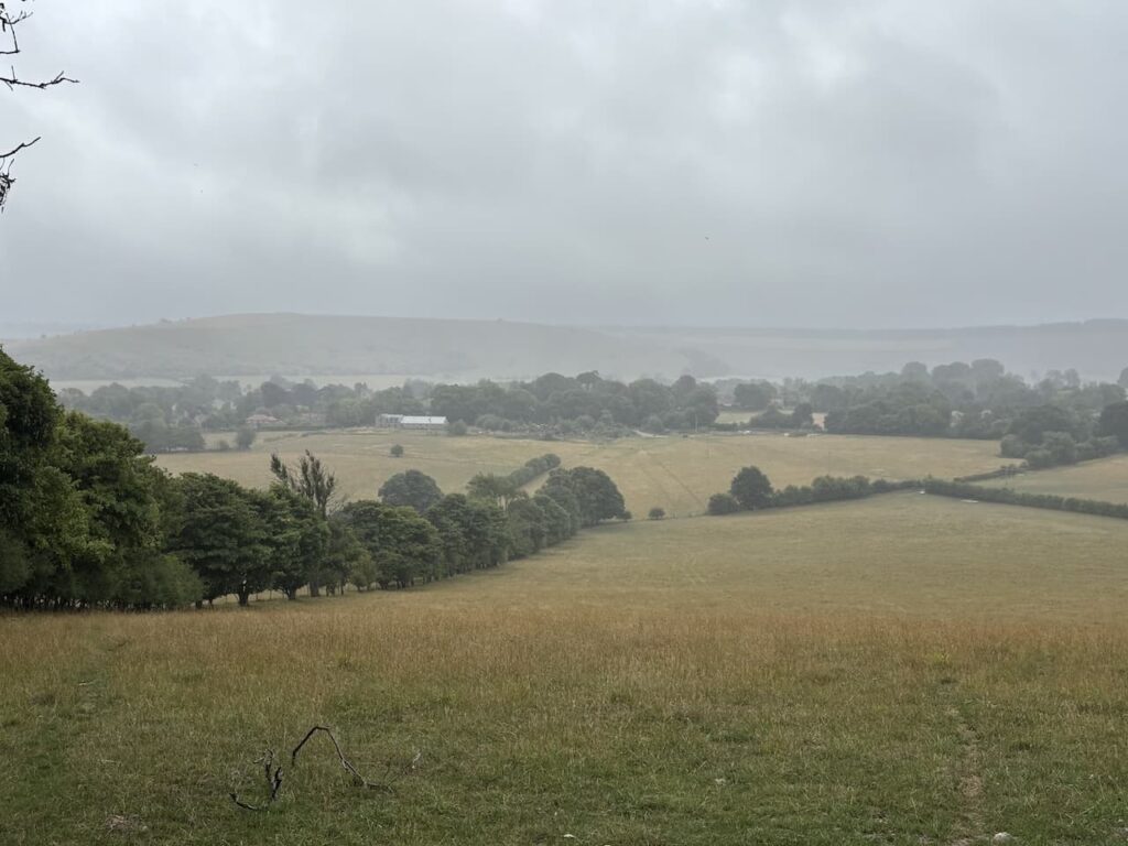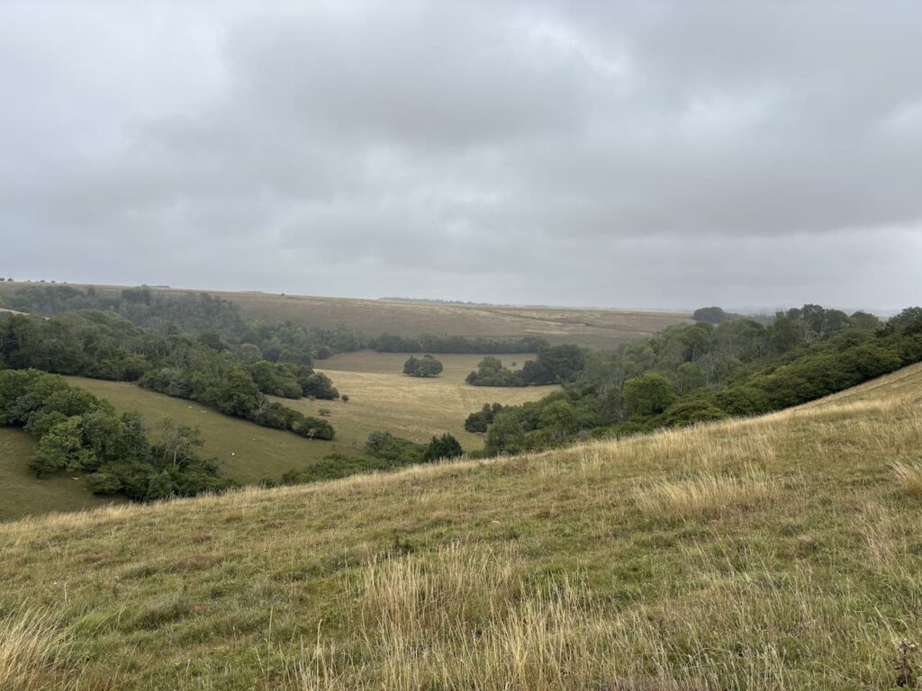 After going through another gate I am on the open access land of Berwick Coombe and even with the low cloud I enjoy far ranging views.