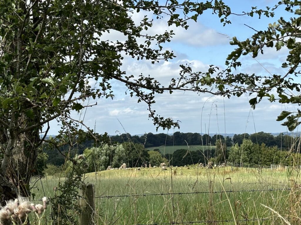 On reaching the top of the hill we spot a stone circle in a field to our left, it would be easy to mistake this for a bronze age structure, however, it was erected in 2003 with the aim of bringing people together and invoking universal love across the world. Sadly I think any magic intended has failed to have any impact on world events.