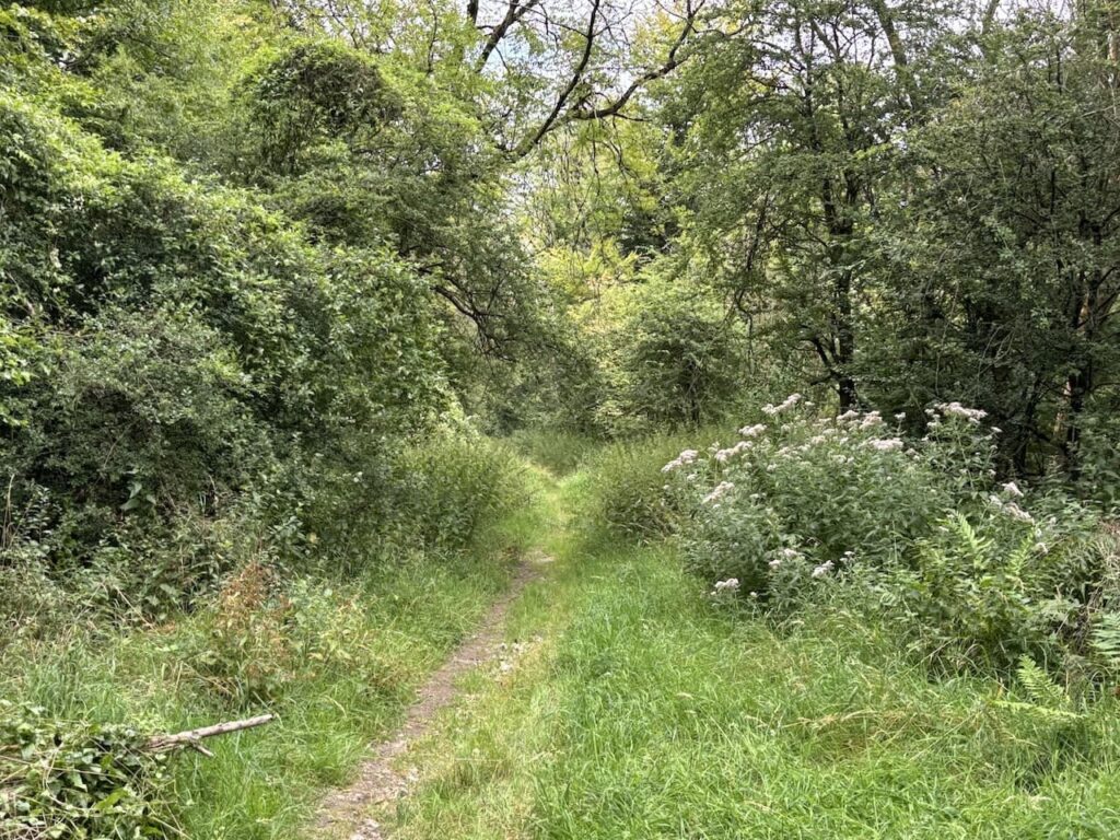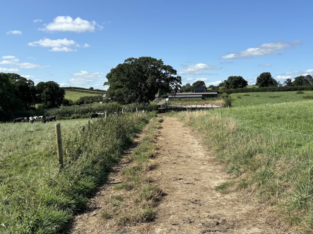 After passing the farm buildings we reach a minor road and turn right for 200 metres before taking a path on the left which leads to Allan’s Farm.