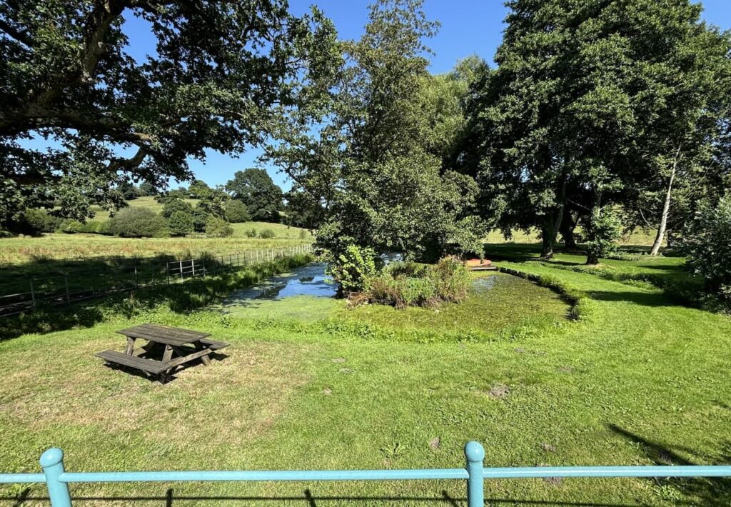 Leaving the trailway we cross the road and start going along the driveway to Bere Marsh Farm and then almost immediately take a footpath on the right which heads across a field towards the River Stour.