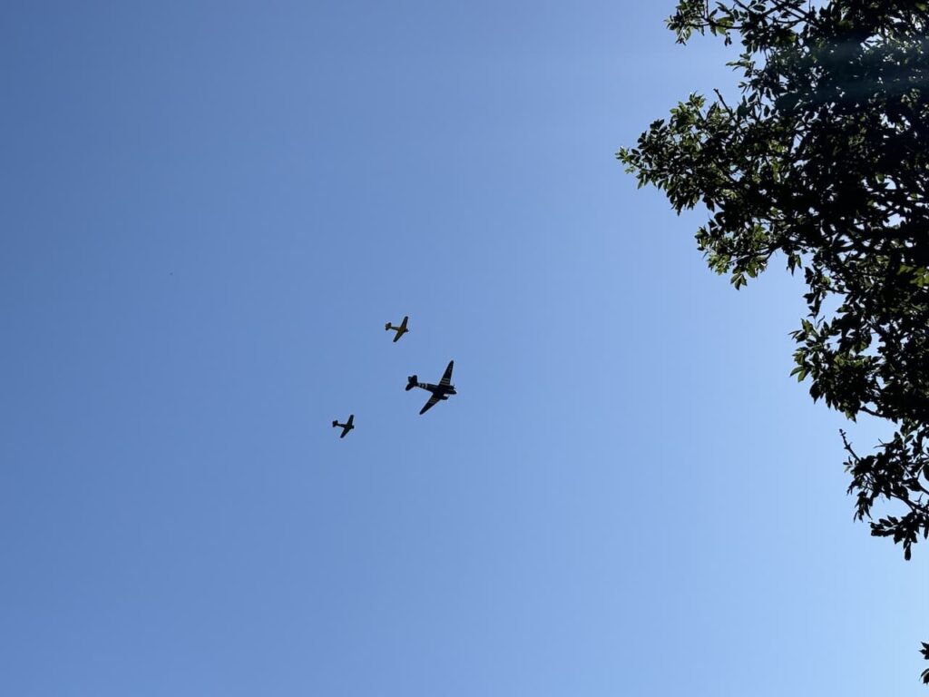 It has turned into a cracking day with a clear blue sky and for the past hour we have been treated to regular fly pasts by planes from Compton Abbas airfield.