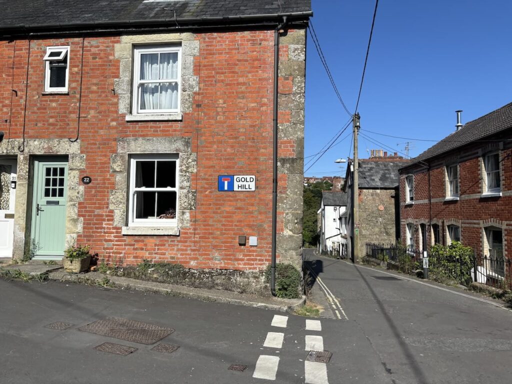 This leads to a tarmac lane, Kingsman Lane, where we turn left and follow this to St Jame’s Street where we turn right and walk the short distance to the foot of the famous Gold Hill.