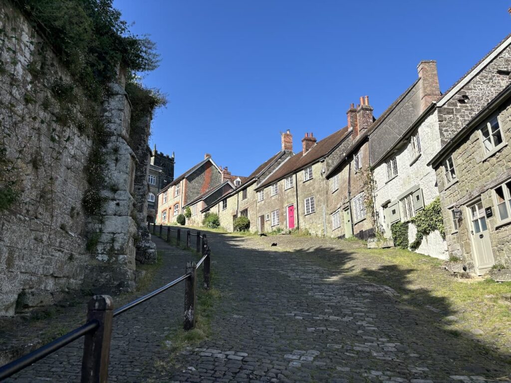This cobbled hill has been photographed millions of times and featured in a number of films and TV shows. It was used in scenes in the 1967 film version of Thomas Hardy’s “Far From The Madding Crowd” and came to prominence when used for the 1973 “Boy on a Bike” television advert for Hovis bread. Amazingly on this stunning afternoon we are the only ones heading up it. Perhaps it is too hot for folk to tackle.
