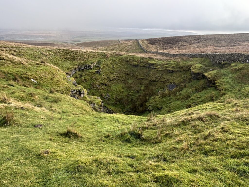 This path gradually descends to reach a junction with the Pennine Way at Churn Milk Hole, a very large sink hole.
