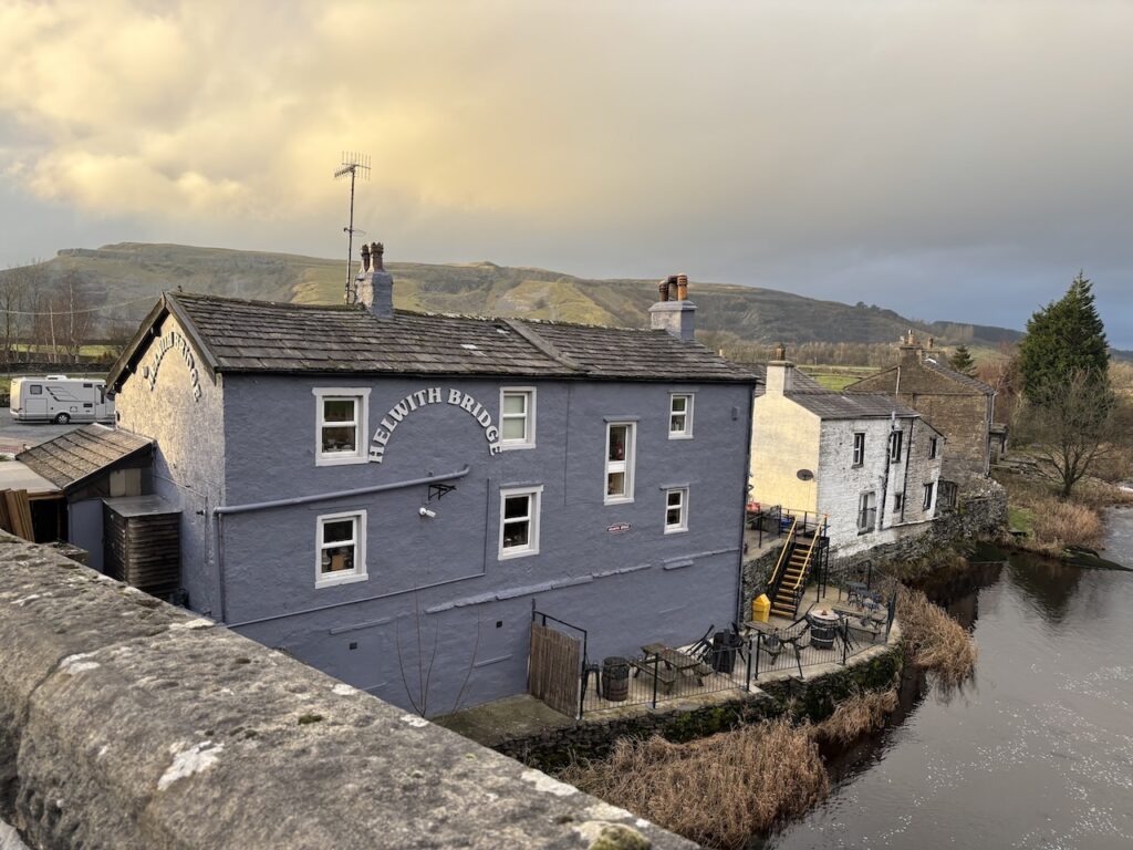 Reaching the road we go straight ahead, there is no pavement so we keep a close eye out for traffic and then after 40 metres turn right towards Helwith Bridge. The road crosses the railway line and River Ribble with the Helwith Bridge pub on our right. Apparently in the 1820’s this was a canteen for local quarry workers but it became a pub in the 1870’s when the railway line was built.