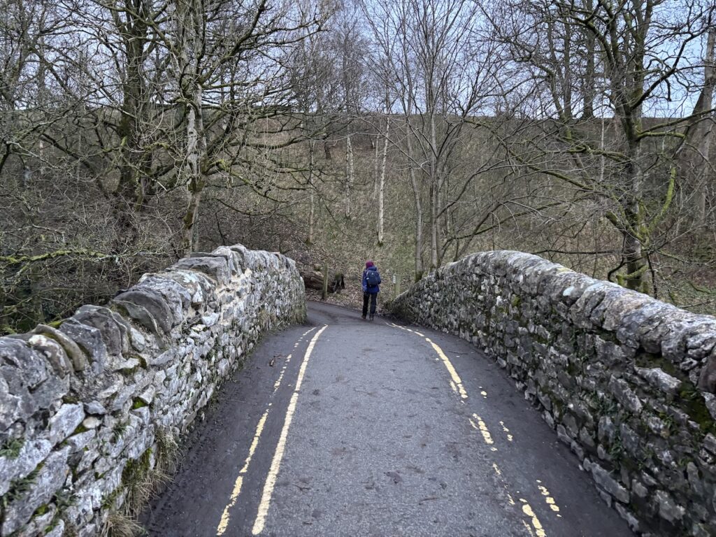 We turn left to pass the hall and head downhill to the River Ribble which we cross on the old Pack Horse Bridge built by Samuel Watson in 1675. In 1931 the bridge was passed to the National Trust, apparently at that time there was concern about the bridge being used by heavy motor vehicles and it was thought the National Trust might be more effective in enforcing weight restrictions on the bridge.