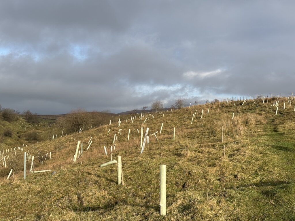 It is a steady ascent to a wall stile and then we continue uphill to another wall stile which we cross to enter an area where trees have been planted around How Beck.