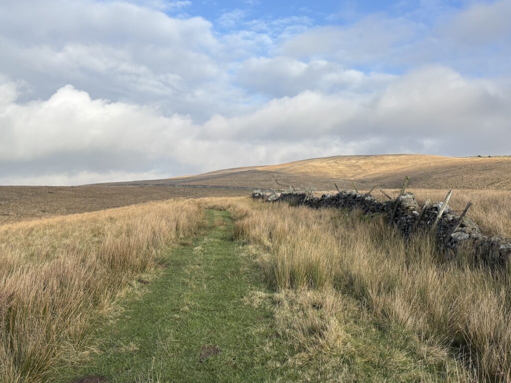 Through the gate we follow the way marked path as it crosses wall stiles over the rough pasture moorland.
