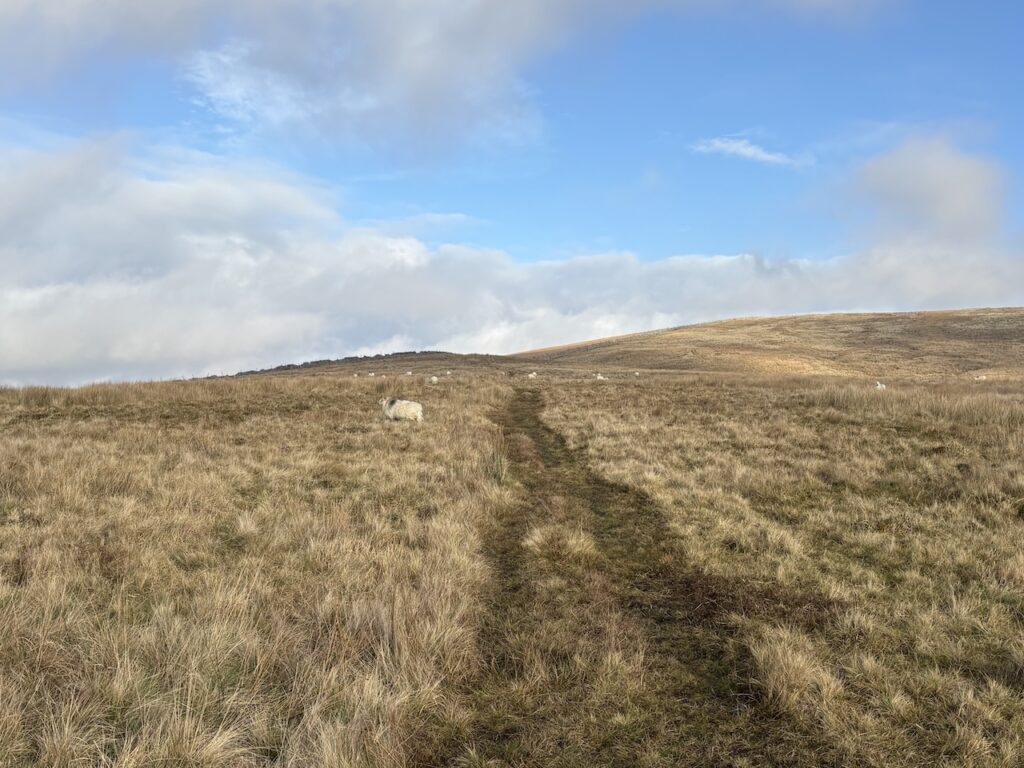 On reaching Moor Head Lane we cross to continue over the moor. Initially this path is not so well defined but in the clear weather conditions it is easy to follow up on to Great Moor Head.